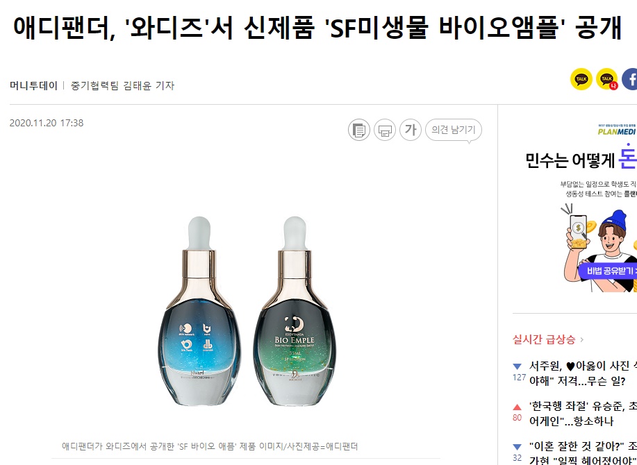 한편 애디팬더는 미생물 바이오를 주축으로 공산품, 화장품, 식음료까지 R&D(연구·개발)하는 바이오콘텐츠 기업이다. 현재 자사 브랜드 '닥터애드워드'로 미국 시장 진출을 진행 중이다.